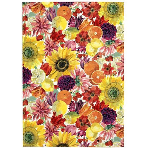 This tea towel brings a touch of vibrant color to any kitchen. The beautiful print combines juicy fruits and delicate blooms, creating a cheerful and fresh look, perfect for everyday use or special occasions. Plus, it's easy to care for! Just pop it in the washing machine and watch it come out good as new! It's the perfect way to add some everyday pizzazz to your cooking space.