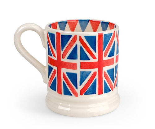 Show patriotism for fellow Brits or Scots by drinking out of a mug emblazoned with the Union Jack. Bridgewater Pottery is made in England in the small Victorian English town of Stoke on Trent. Each piece is hand painted, hand finished and unique. All Bridgewater Pottery is dishwasher and are even pretty likely to survive daily washing up in the hands of your children. Celebrate your British pride while you sip from this Union Jack mug. Each mug is crafted with care and proudly made in England using traditional methods. Plus, it's dishwasher safe, perfect for surviving your kid's messy mealtime habits. Now that's true British durability!