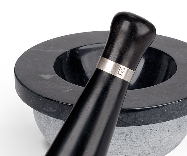 No kitchen should be without a mortar and pestle. It performs a variety of tasks- from grinding spices and crushing garlic to making pesto.Our formidable mortar provides a smooth grinding surface for either wet or dry foods. Solid black marble. This kitchen "tool" is outstanding, and will be just as much a centerpiece to your kitchen as it is a functional tool.
